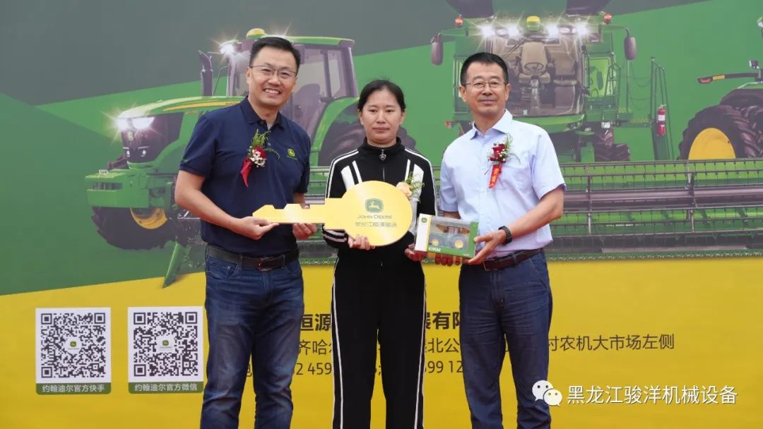 隨后,約翰迪爾領導層為黑龍江恒源迪農業開業剪彩并向用戶交付了8600青貯機、S760收割機和6M-2104拖拉機金鑰匙。